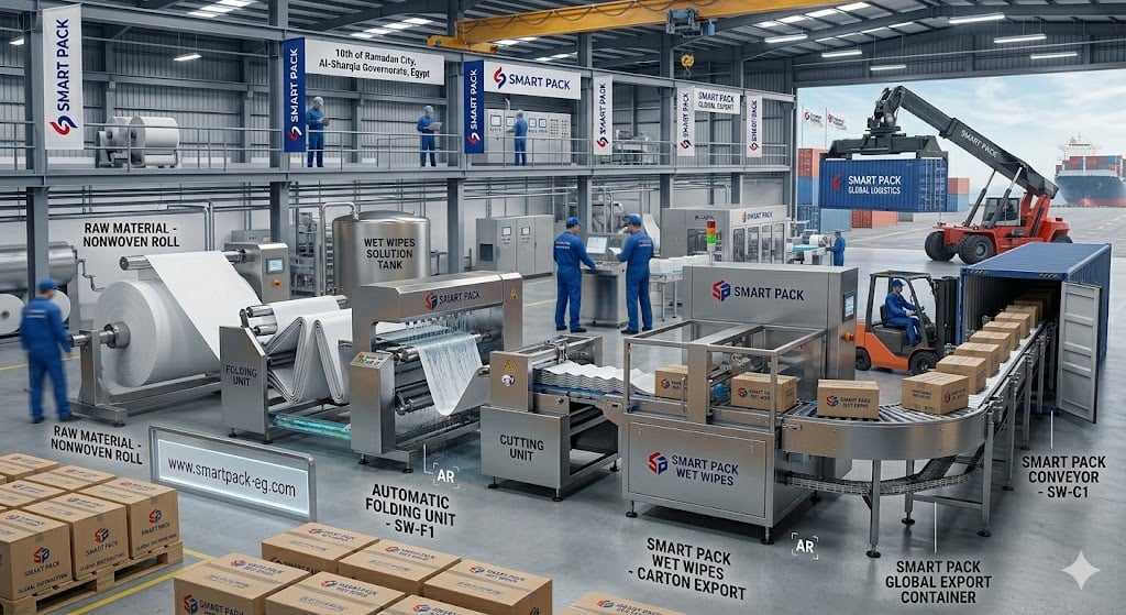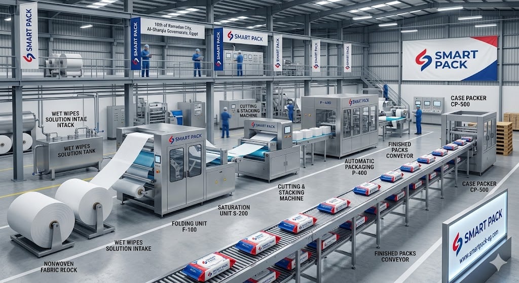 وهنا تبرز سمارت باك كخيار موثوق لتوفير ماكينات وخطوط تصنيع وتعبئة وتغليف المناديل المبللة المصممة خصيصًا لتلبية احتياجات المصانع بمختلف أحجامها، مع دعم فني وخيارات تخصيص مرنة.