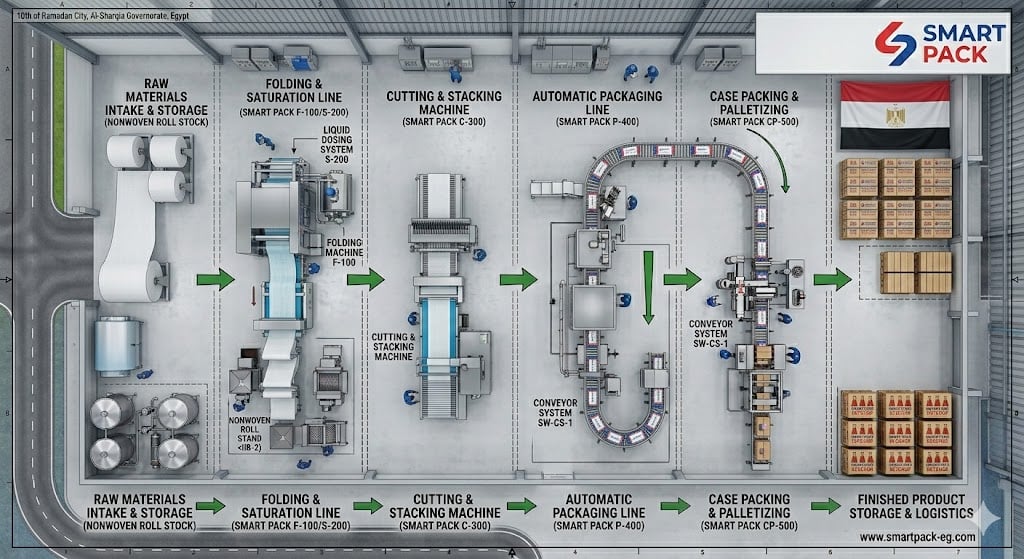 حلول تصنيع المناديل المبللة للمصانع من سمارت باك
