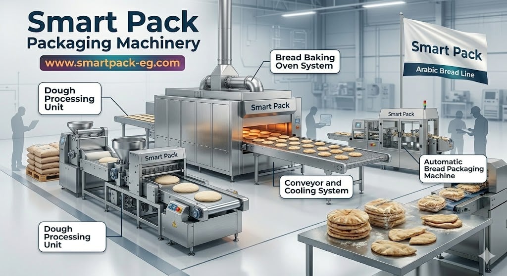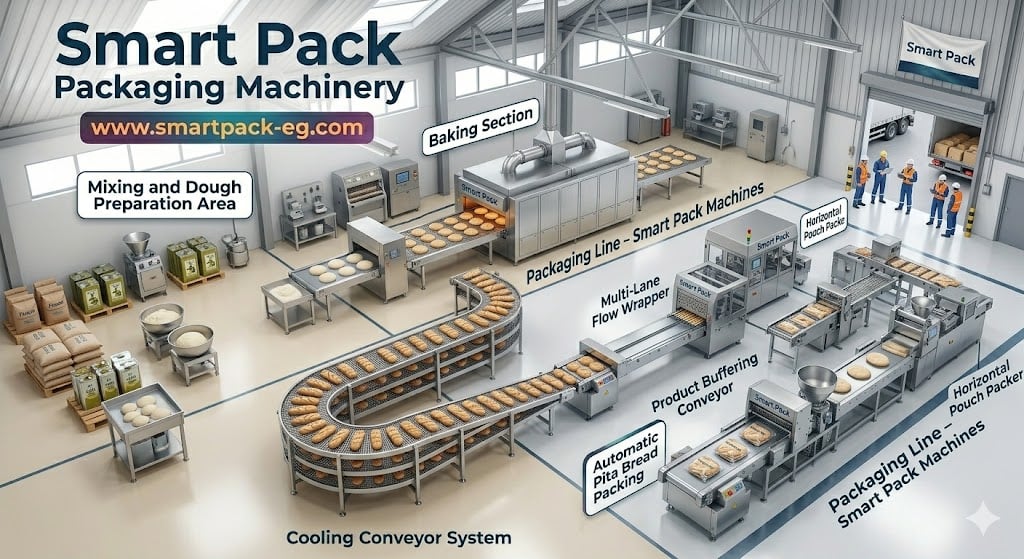 خط آلي لإنتاج الخبز العربي 6000–8000 رغيف/ساعة | استثمار صناعي ثابت الطلب وعالي الاستمرارية