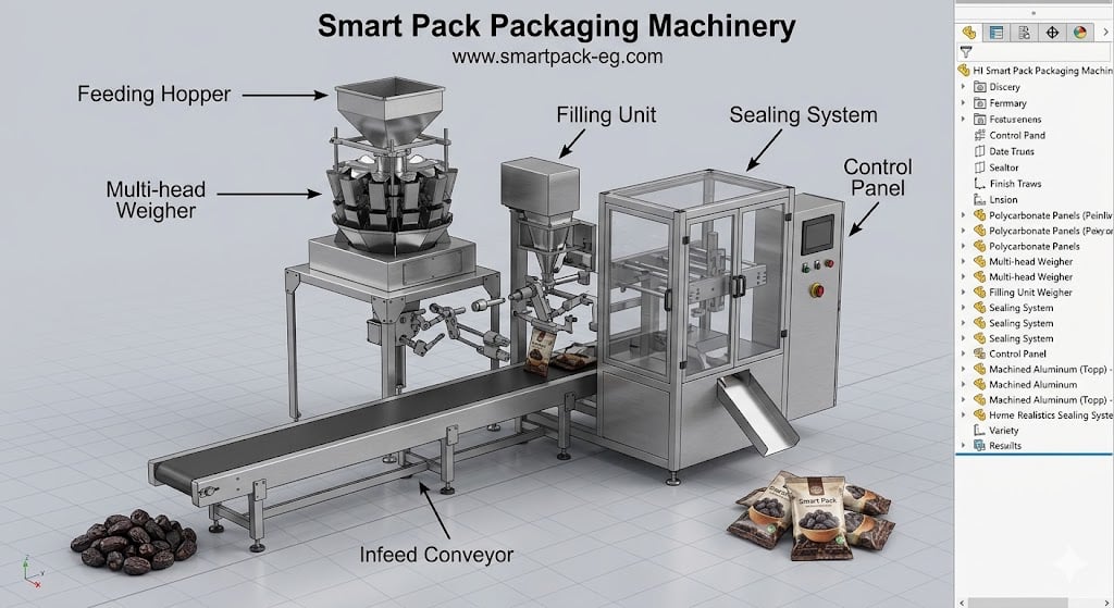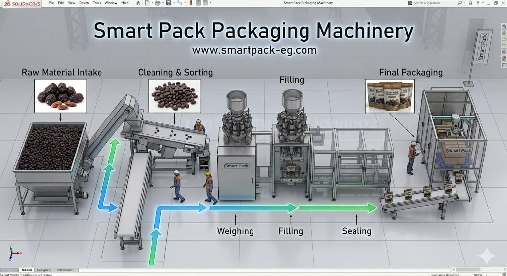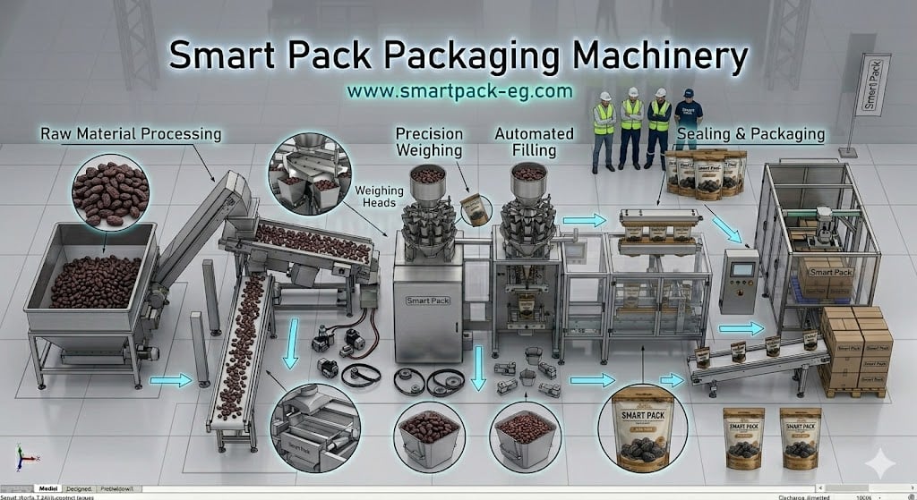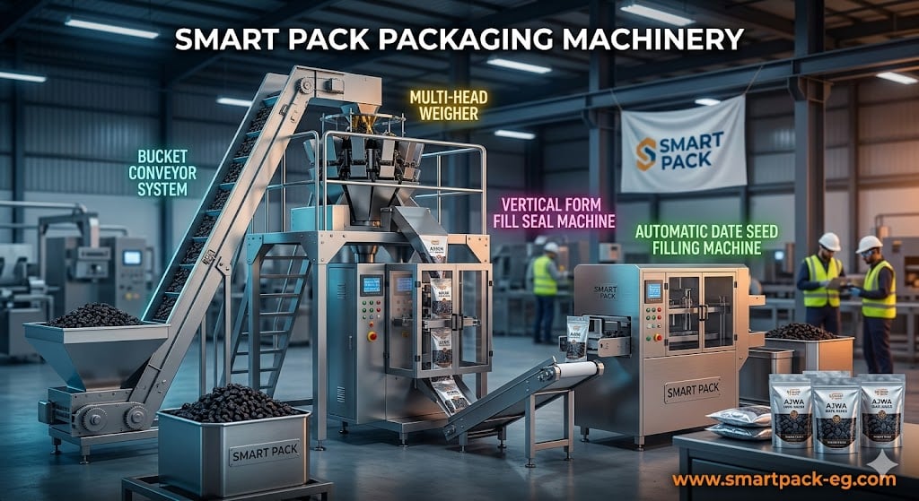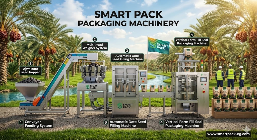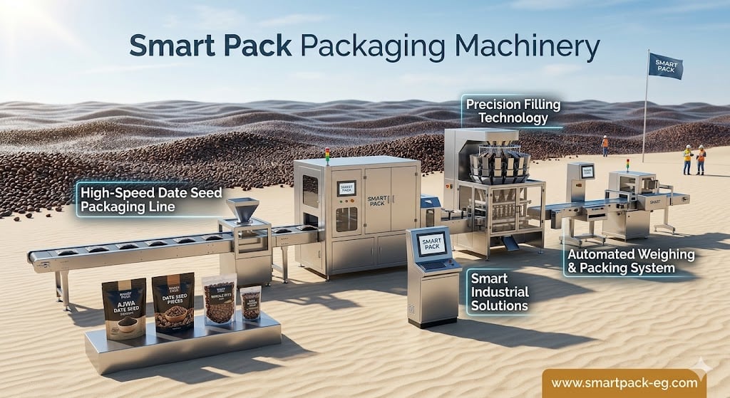 تحويل عجم التمر إلى مورد صناعي مربح يتطلب حلولًا تقنية دقيقة. الحلول التي تقدمها سمارت باك في مجال ماكينات تعبئة وتغليف وخطوط انتاج تساعد مصانع الأغذية والأعلاف على استغلال عجم التمر بأقصى كفاءة، وتحويله من مخلف زراعي إلى مصدر ارباح مستدامة.