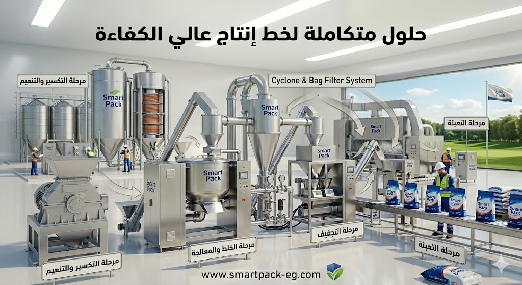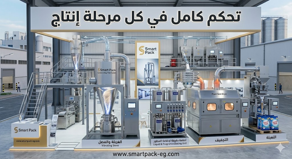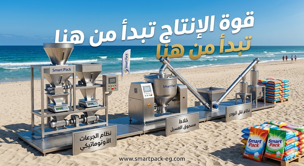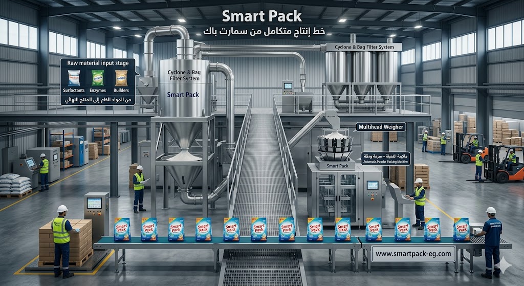 شركة سمارت باك توفّر حلولًا متخصصة في ماكينات تعبئة وتغليف المواد البودر وخطوط إنتاج مسحوق الغسيل، بما يسمح بتشغيل العادي والأوتوماتيك بكفاءة عالية وعائد استثماري محسوب.