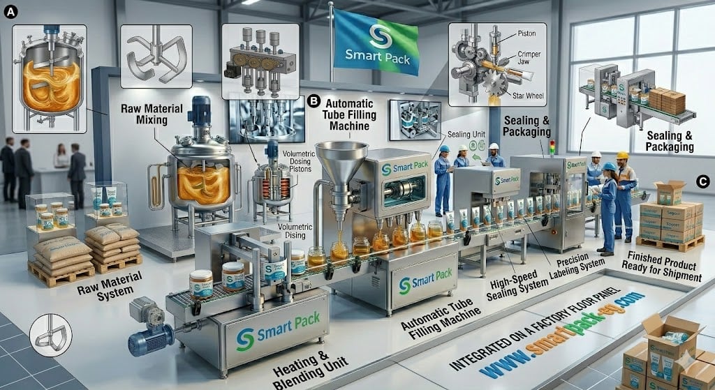 | Mixed production (cream + gel + powder) | Integrated filling & packaging line | Scalability & efficiency |