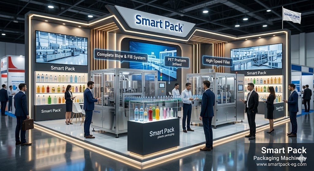 تواصل الآن مع فريق سمارت باك للحصول على استشارة فنية مجانية وعرض سعر مُخصّص حسب احتياجات مصنعك وطاقة الإنتاج التي تستهدفها، من تصنيع العبوات بالنفخ حتى التعبئة النهائية