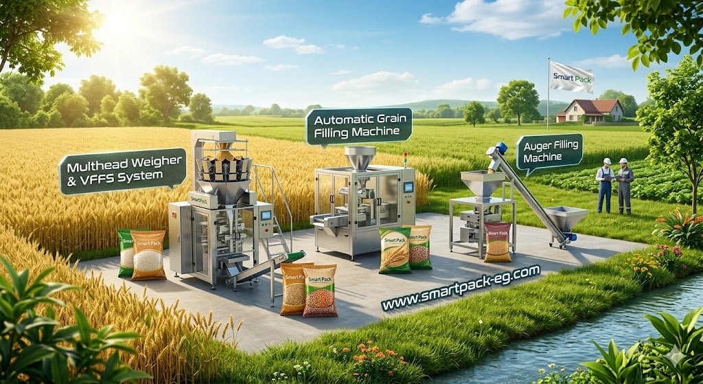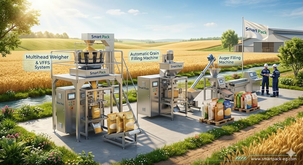ارفع كفاءة إنتاج الحبوب بماكينات تعبئة احترافية تدعم التوسع الصناعي
