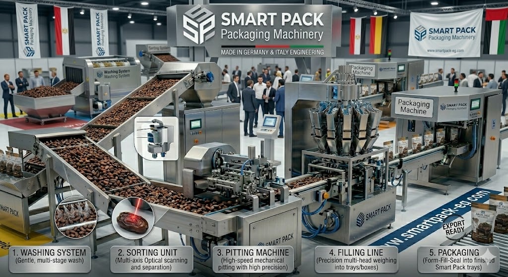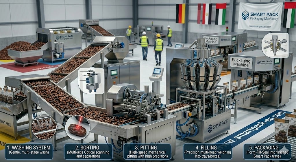 Smart Pack specializes in manufacturing and supplying filling machines, packaging machines, and custom production lines for date factories and food packaging plants.