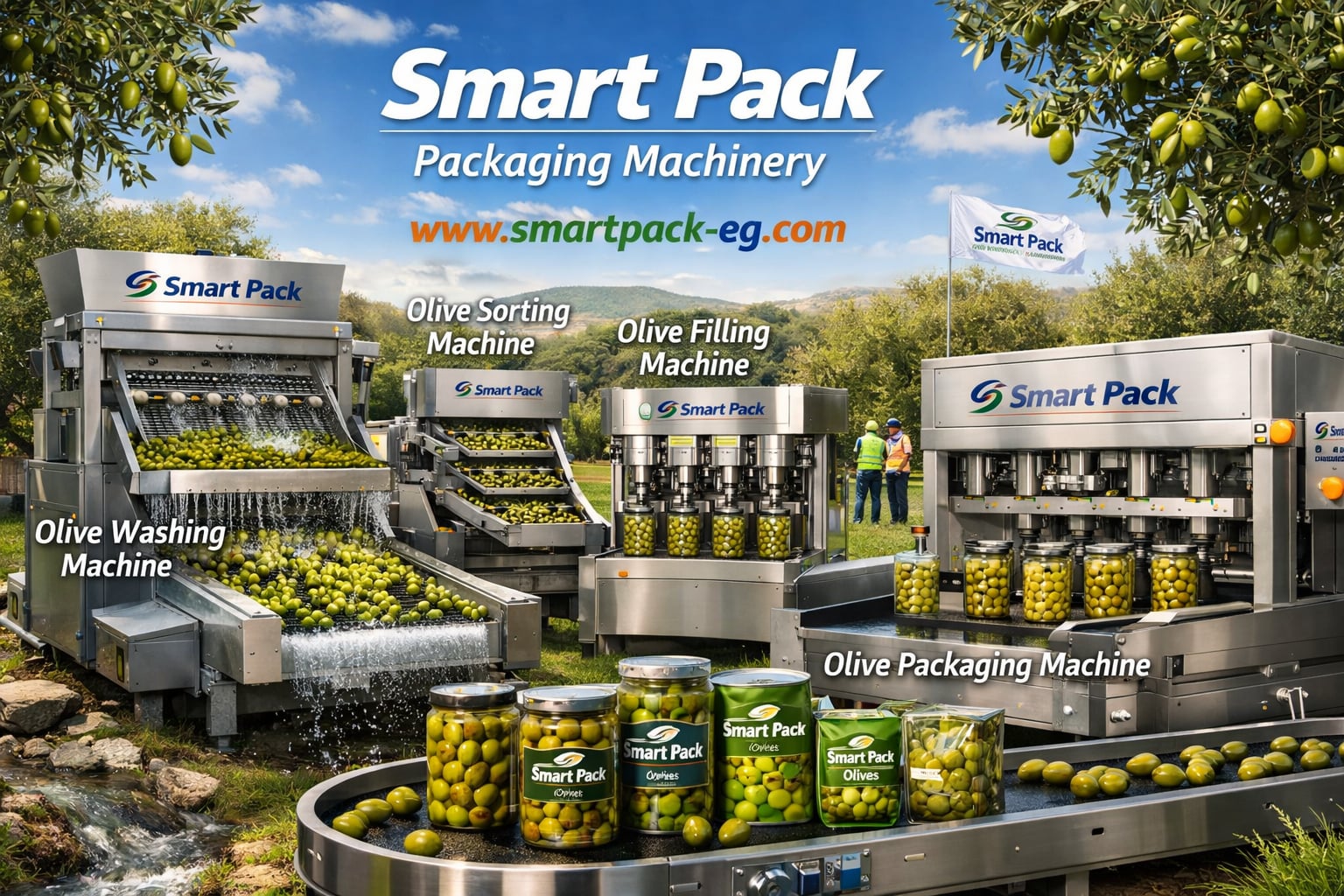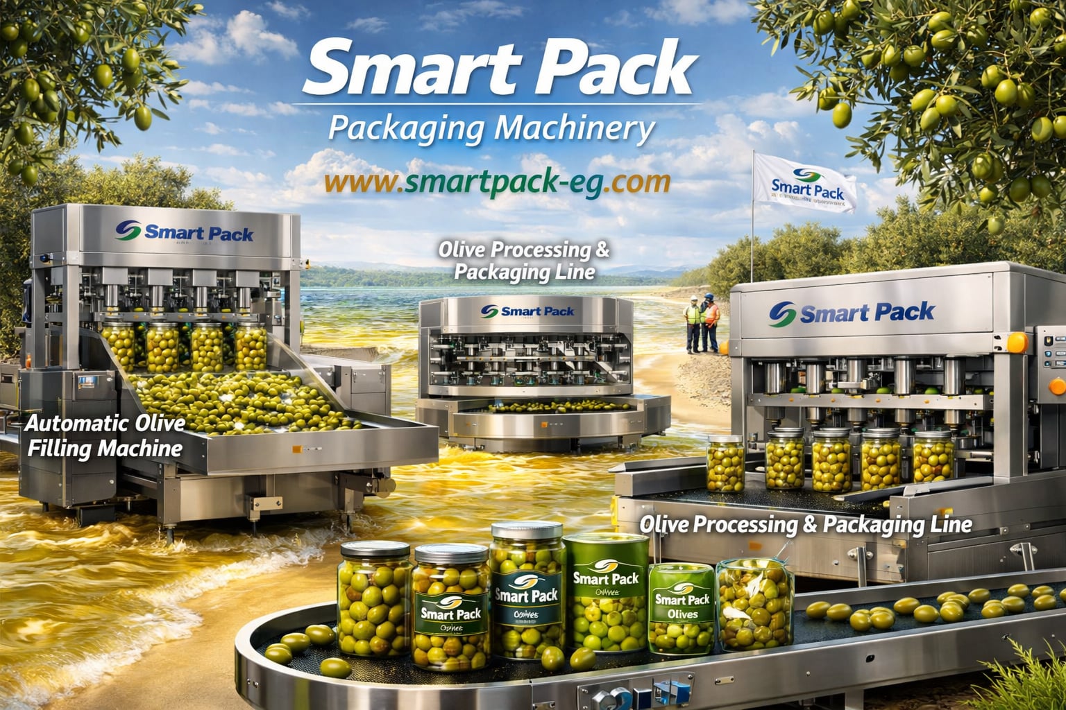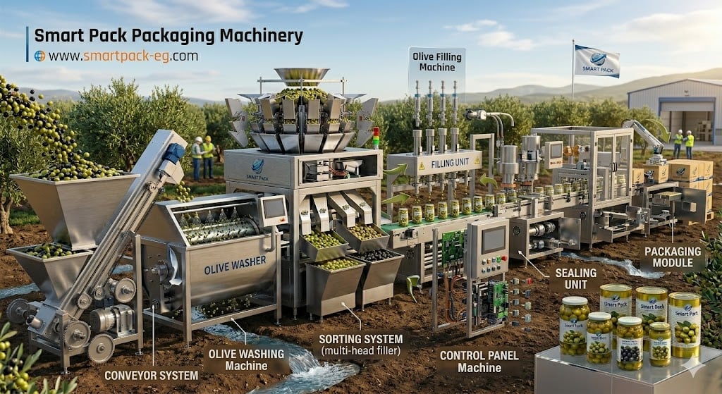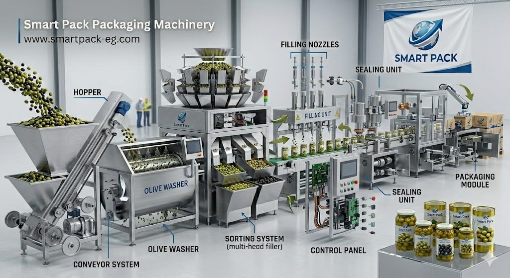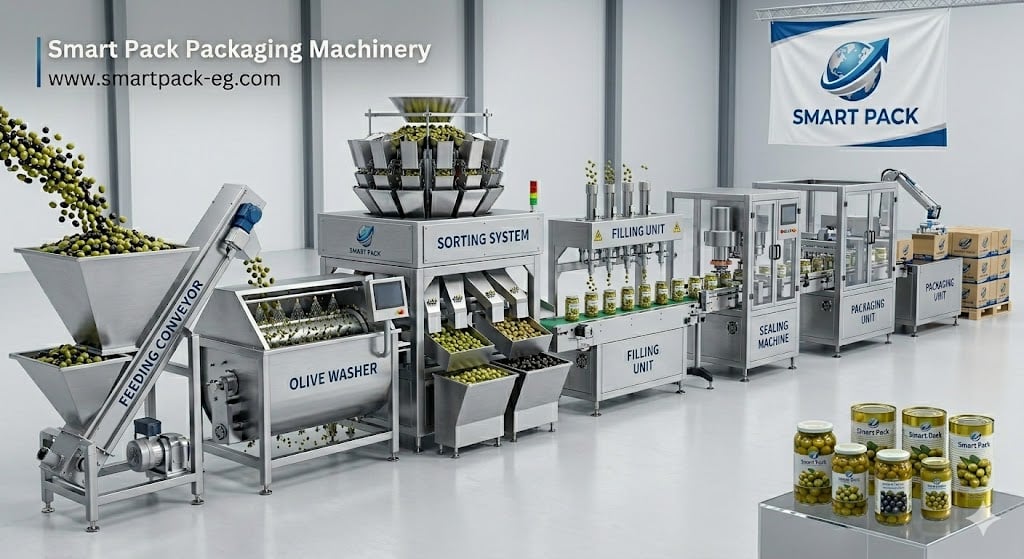 Smart Pack specializes in designing and manufacturing olive filling machines, packaging machines, and complete production lines for olive projects and food packaging factories.