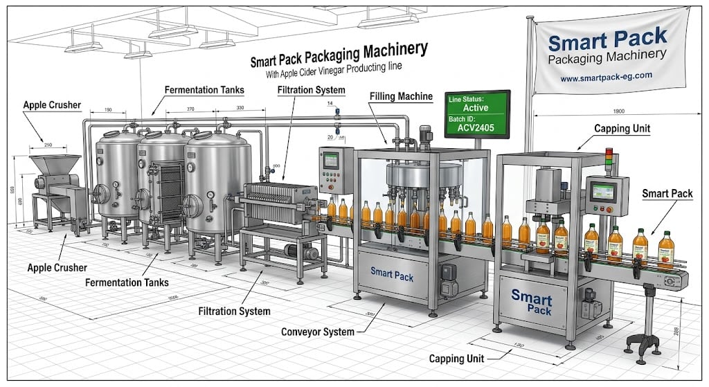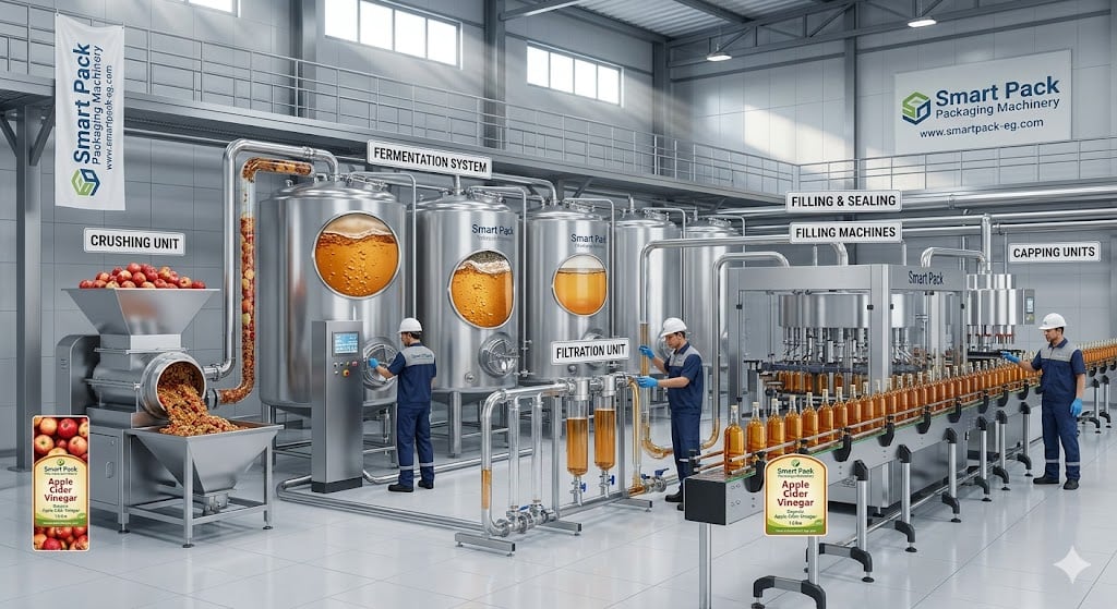 линия упаковки яблочного уксуса для дистрибуции и экспорта Египет