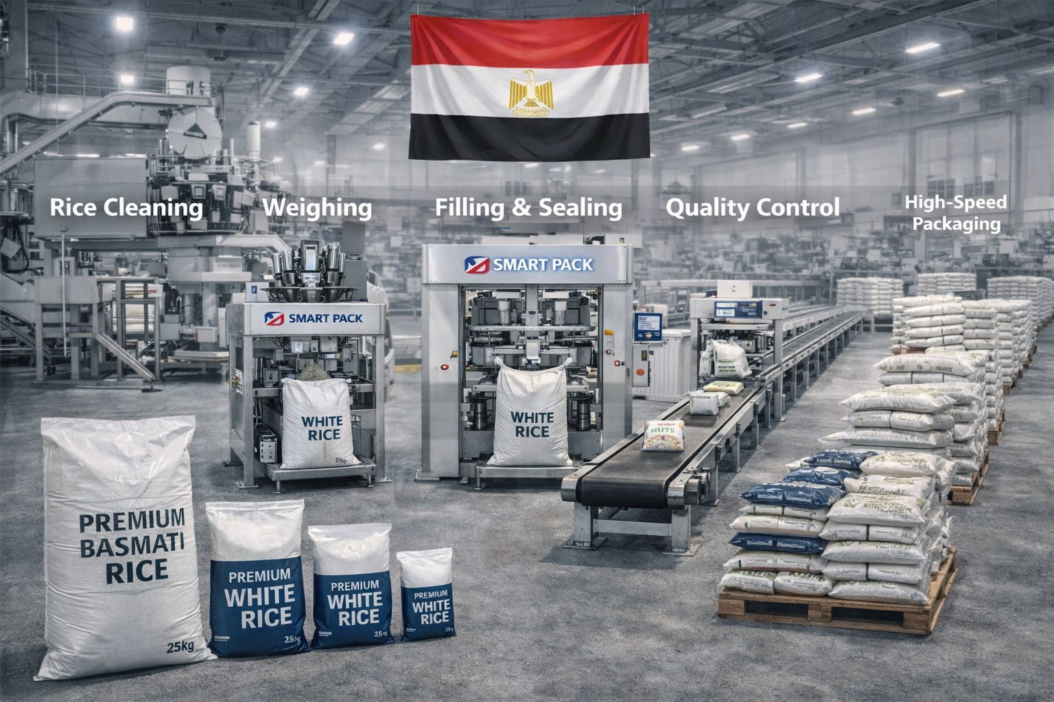Mısır’da Beyaz Pirinç Dolum ve Paketleme Makineleri