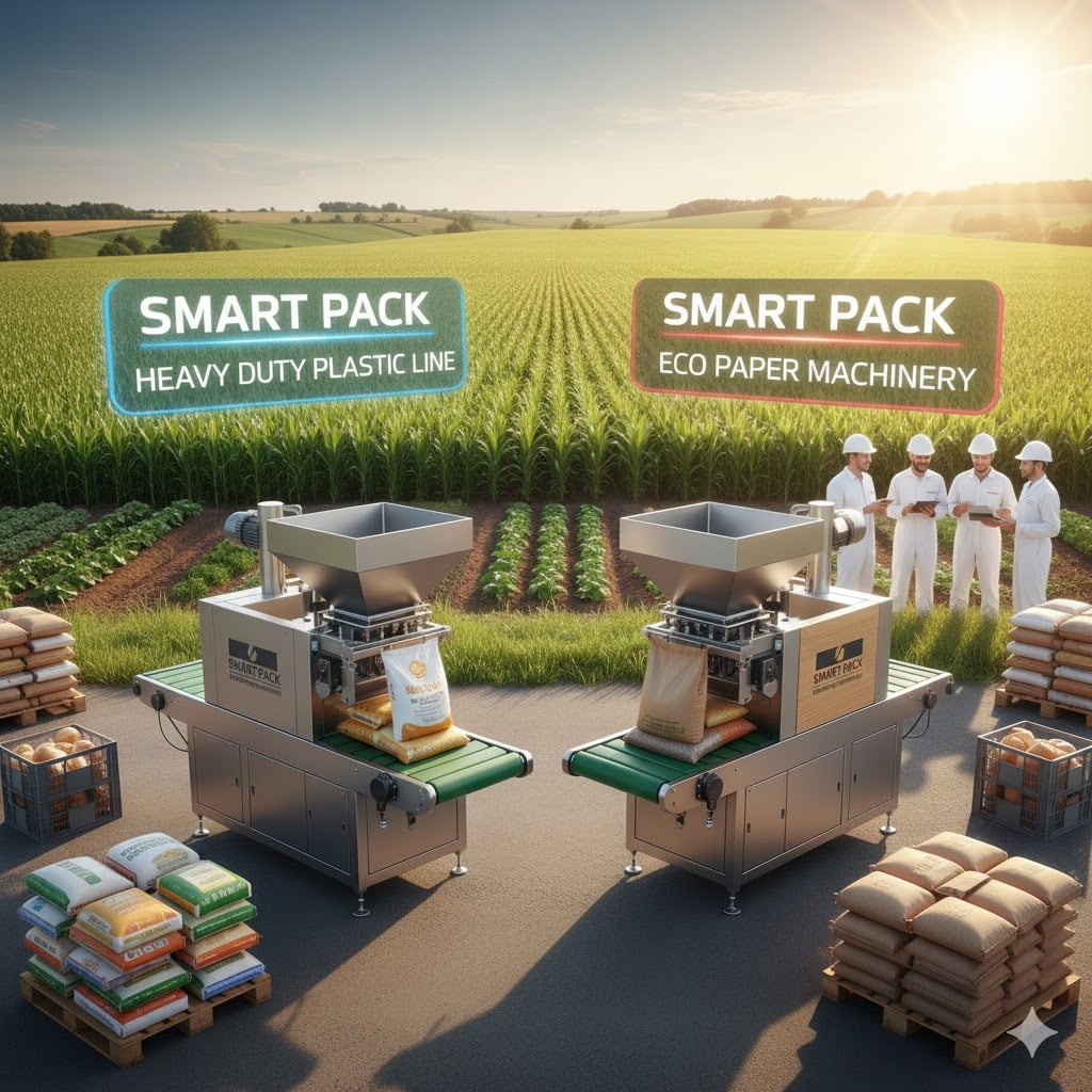 • Çuval ve torba dolum makineleri – çimento, un, pirinç ve granül dolumu için endüstriyel .