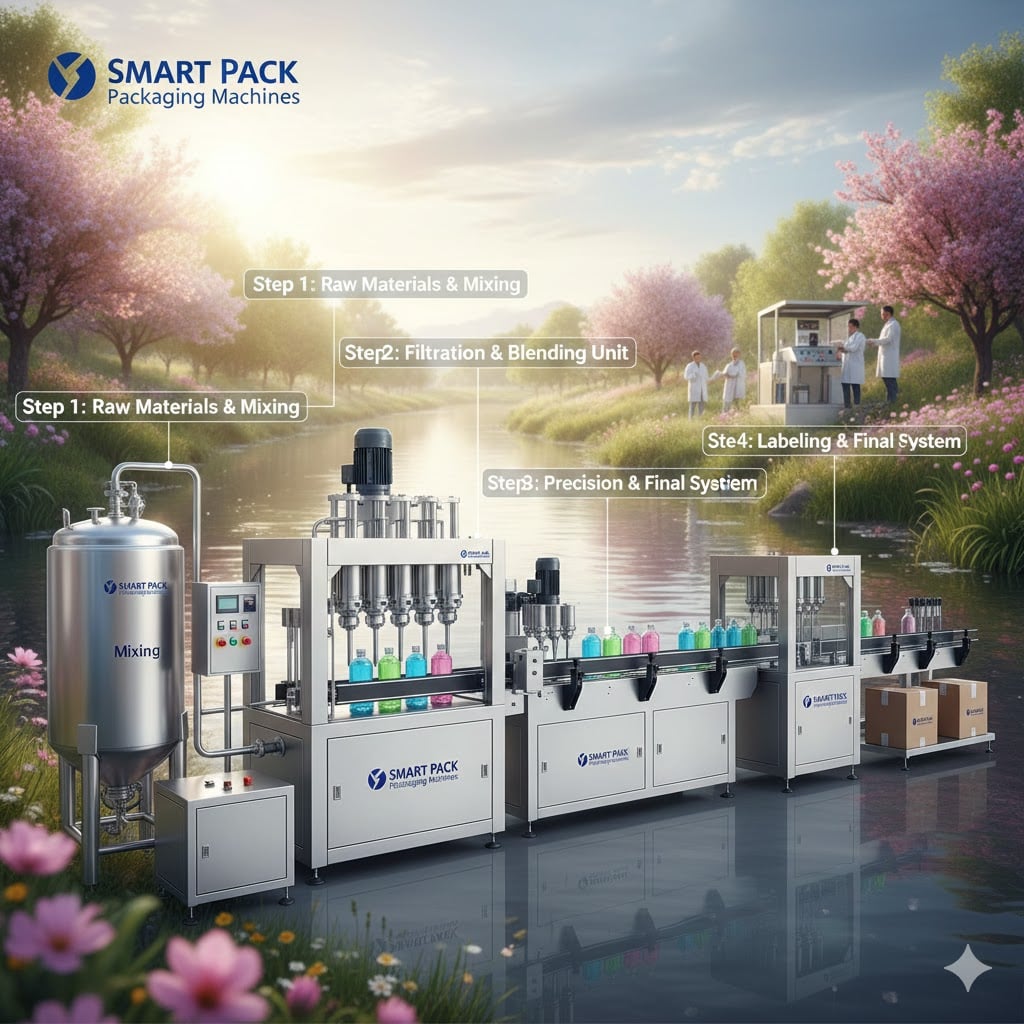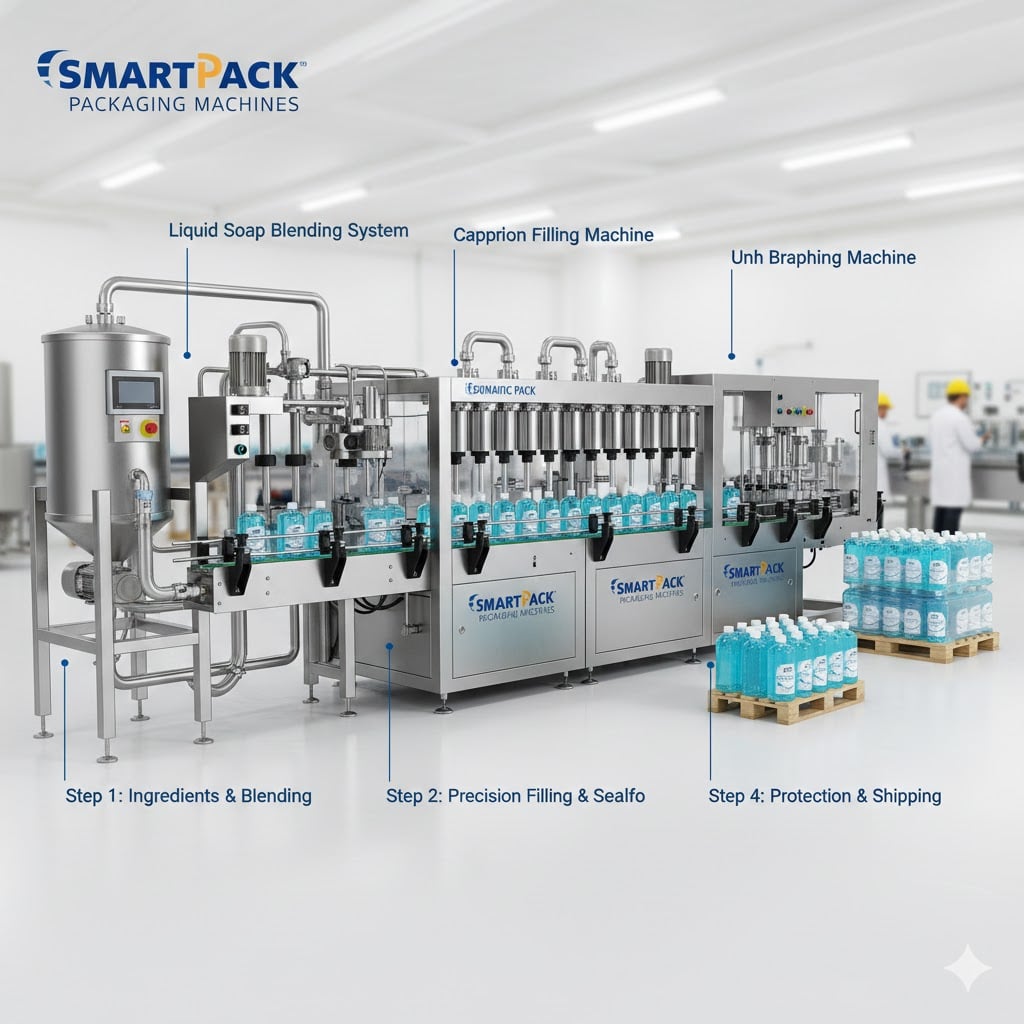 Sıvı sabun üretimi, hazırlık aşamasından başlayıp nihai ambalajlamaya kadar uzanan entegre bir üretim hattı gerektirir.