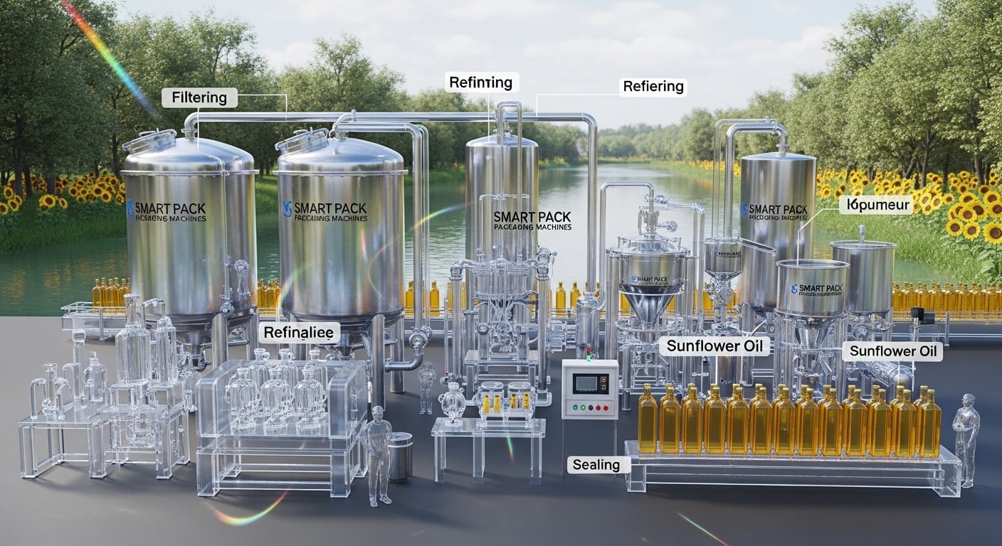 Yüksek kaliteli bitkisel yağ üretimi; hassas işleme aşamaları ve modern dolum–ambalaj makineleri gerektirir.