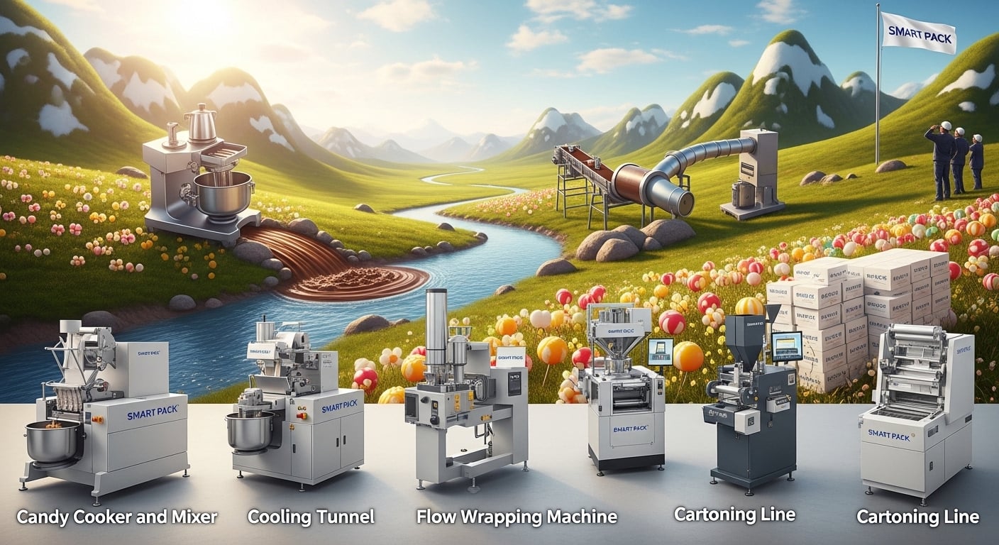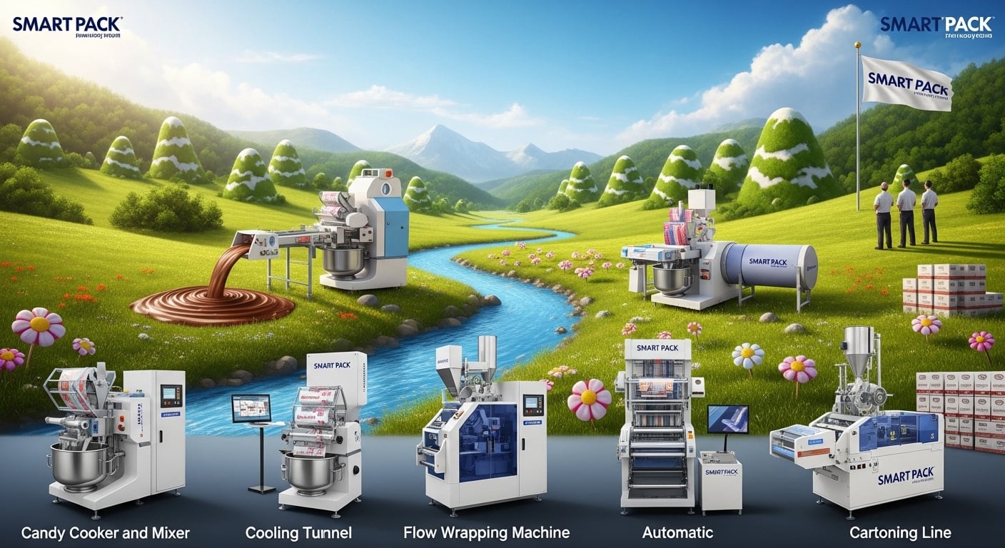 Smart Pack iş birliğiyle size özel tasarlanmış bir şekerleme üretim hattı ile şimdi başlayın ve ölçeklenebilir, pratik endüstriyel çözümler elde edin.